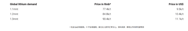 此外,摩根士丹利称,供需平衡状态下锂矿的价格面临潜在下行风险: