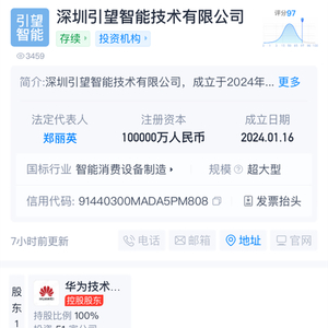 天眼查App显示,深圳引望智能技术有限公司于近日成立,法定代表人为郑丽英,注册资本10.00亿元人民币,经营范围含智能车载设备制造、智能车载设备销售等。