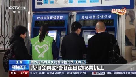 国铁南昌局萍乡站客运值班员 王红卫:最近,我们也遇到很多老年旅客,我们会帮助他们在自助取票机上打印一张行程信息提示单,行程信息提示单在所乘车次下方会显示详细的检票口和座位号,方便旅客乘车。
