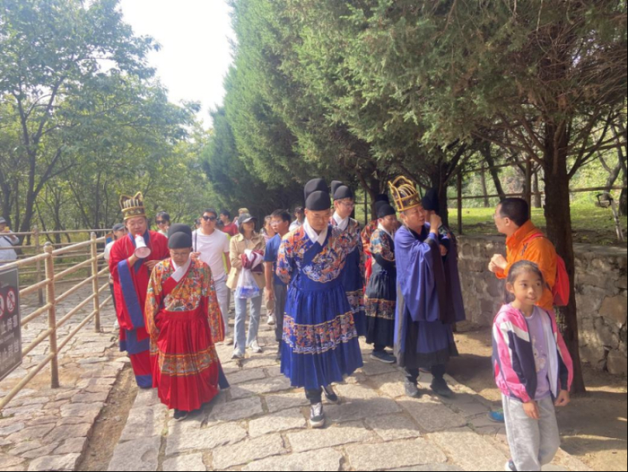 银山塔林景区举办“遇二公游山”活动,将通过角色扮演的方式,带领游客穿越400年的时光,同游于山水之间。活动在银山主塔林区与游客进行了趣味互动,以有奖问答的形式,向游客宣传银山历史文化知识。
