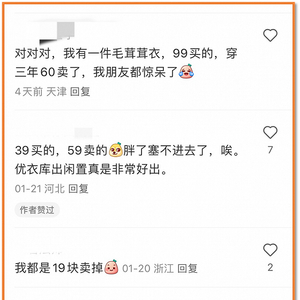 ● 我有一件优衣库毛茸茸衣,99元买的,穿了3年60元卖了,我朋友惊呆了;