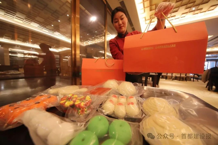 国家会议中心大酒店面点及熟食礼盒的销售情况也较为乐观。“为了迎接2024年春节到来,国家会议中心大酒店锐意创新,精心策划推出近十款面食年货礼盒、美味熟食礼盒,为客户呈现2024年美食盛宴的味蕾享受与视觉震撼,让大家在温馨团聚的时刻,尽享家人好友间的欢乐。”国家会议中心大酒店餐饮负责人还介绍说,“面食年货礼盒丰富多样,包括精美福袋、京味豆沙包、柿柿如意甜点等,既充满传统年画的美感,又让人回味舌尖上的美味。不仅如此,还推出了松仁小肚、自制酱鸭、甜烧白等熟食礼盒。”
