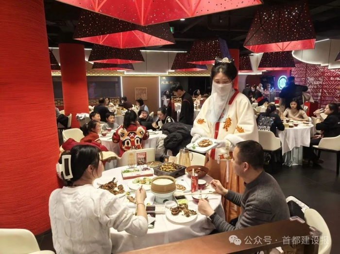民族饭店将美食摄影分享与龙酥点心制作相结合,举办了“满满的年味儿”摄影师下午茶活动。西苑饭店蓬莱春餐厅、养怡园食府、紫金云顶旋转餐厅推出多款团圆家宴套餐,为客人打造五星级年夜饭。燕翔诺金酒店禾家中餐厅春节期间契合不同用餐需求,精心筹划5款粤式年味套膳,酒店大堂吧推出“祥龙瑞气”新春限定下午茶,融中式心意于西式小点,为团圆景象更添喜庆。亮马河大厦首次利用多功能厅进行装饰布置来承接年夜饭活动,还准备了猜灯谜、赏花灯等活动,为公寓长住客人和机组成员们推出“青龙送福,万事兴龙”会员活动,准备了富有龙年特色的“年货”,让宾客和家人在欢声笑语中度过一个难忘的新年假期。新侨饭店蓬莱阁中餐厅厨师长与厨师团队经过多次研制、反复修改菜单,以精品鲁菜和新派川菜相结合,推出3款年夜饭套餐,目前已预订爆满,同时推出“年夜饭到家”服务,让顾客在家就能享受到星级酒店的品质生活;和平宾馆为方便节日期间大批亲子出游的家庭,推出了“京味菜+亲子房”特惠。在酒店大堂搭建了以“花开富贵”为主题的合影区,并在大堂吧推出了“喵咖2.0”下午茶。