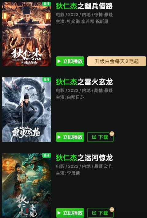 此后,狄仁杰IP偃旗息鼓,未有佳作。偶尔会冒出一些网络大电影,单2023年,爱奇艺上就有三部“狄仁杰”网大上线,只是质量堪忧,不值一哂。