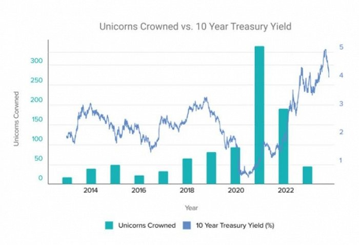 3、2024年预计会出现独角兽关停风。挤干市场水分后,美国独角兽的数量会在一段时间内稳定在350家更健康的公司(目前数量的65%)。