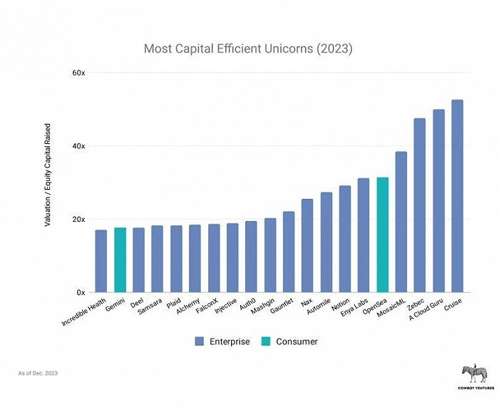 2、约20%的独角兽,资本效率不到4x甚至更低。