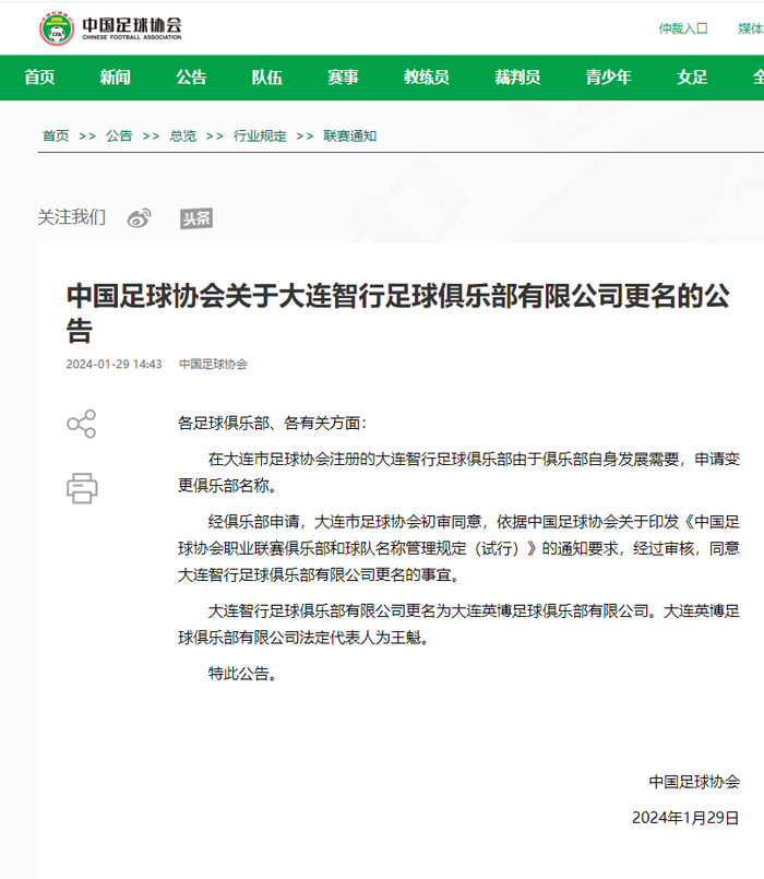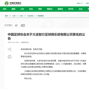 1月29日,大连智行足球俱乐部官方宣布正式更名为大连英博足球俱乐部,并发布了新的队徽,足球城的中甲新军将以全新形象亮相新赛季。