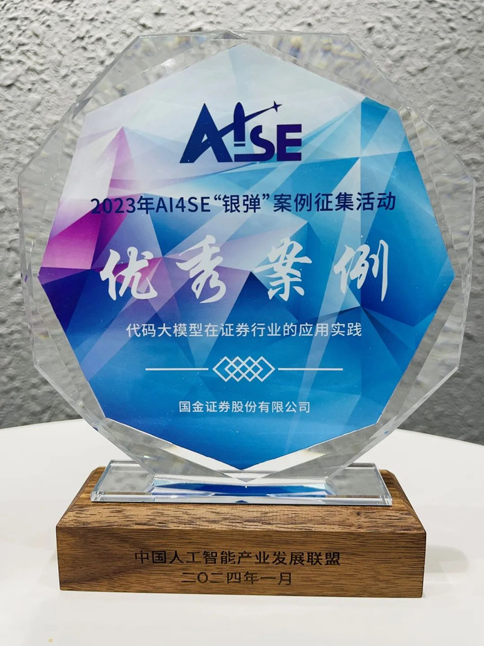 国金证券《代码大模型在证券行业的应用实践》荣获2023年AI4SE银弹优秀案例