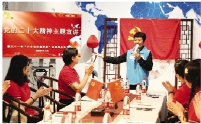 2023年初,顺义区第十一中学工会主席李海霞组织成立了一支志愿服务队,他们走进民俗园为游客讲解民俗文化、园艺知识等。他们把志愿项目从校内逐步带到校外,提供的志愿服务从业余逐渐走向专业,并入选“全国中学生志愿服务示范项目”、首都志愿服务项目大赛银奖。