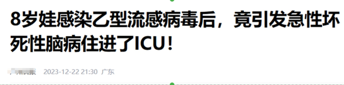 广东一 8 岁的孩子感染乙流,并发了急性坏死性脑病,住进 ICU。