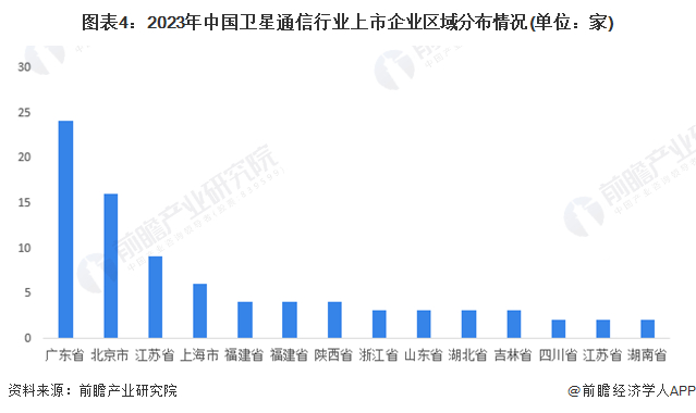 截至2023年9月,我国A股上市企业中主营产品包含卫星通信的企业共计83家,从区域分布来看,广东省共24家,北京市共16家。排名前四的省市上市企业数量占我国卫星通信行业上市企业总数的比重达66.26%。我国卫星通信行业区域集中度较高。