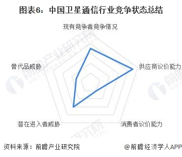 从五力竞争模型角度分析,卫星通信行业上游供应商主要包括卫星制造、卫星发射及卫星通信设备关键零部件制造三个环节,技术附加值均较高,供应商议价能力较强。卫星通信行业下游消费者组成相对固定,以政府用户和行业用户为主,需求稳定,且中游供应企业数量不多,整体来看行业消费者议价能力较弱。我国卫星通信行业进入壁垒较高,但现有企业对关键资源的控制程度不高,且行业增长较为迅速,吸引力较大,整体新进入者威胁较大。整体来看,我国卫星通信行业替代品威胁一般。