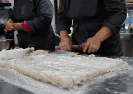 蝴蝶酥的制作要经过打面、分面、开面、压条、切条、烘烤六大工序。生产相关负责人介绍,为了做出蝴蝶酥的层层酥皮,需要将裹住黄油的面皮擀开、折叠,再擀开、再折叠,期间还要不停撒糖,一遍又一遍,直至离开高温的烤箱,酥皮才会在微凉的空气中变得干燥、蓬松、酥脆。这时咬上一口,简直酥到掉渣。