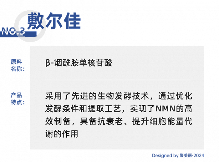 据悉,NMN全称“β-烟酰胺单核苷酸”,是一种自然存在的具有生物活性核苷酸,也是人体重要辅酶NAD+的直接前体,其参与人体多项生化反应,与人体内能量代谢、免疫、DNA复制息息相关,在口服领域拥有着“不老药”的称谓。
