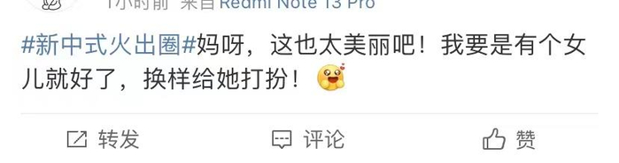在社交媒体上,随着新中式的爆火,许多网友戏称这是“血脉觉醒”,还有网友表示这是“独属于国人的浪漫”。
