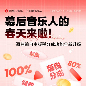 1月30日,网易云音乐宣布面向音乐行业推出升级举措,针对幕后音乐人群体发布“编曲人自由版税”功能,将编曲人群体正式纳入歌曲发布后版税收益分成中,通过真金白银的收益增长,让每一份创作都能收获应有的回报。