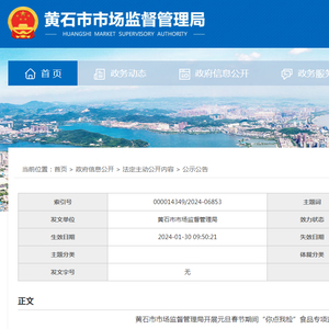 黄石市市场监督管理局开展元旦春节期间“你点我检”食品专项监督抽检信息公告(第1期)