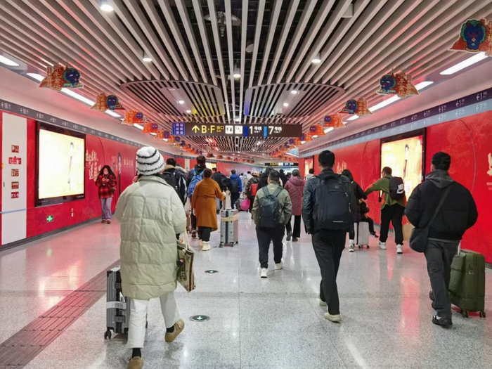 “针对春运期间外来游客较多的情况,19号线双流机场2航站楼东站联合10号线双流机场2航站楼站,通过补强购票指引、增设引导人员等措施,强化车站现场引导服务和电子票引导工作,帮助乘客快速换乘通行。”成都地铁运营有限公司相关负责人介绍道。