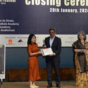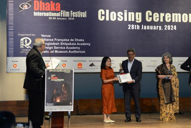 1月28日下午,达卡国际电影节举办闭幕式暨颁奖仪式。由坏兔子(上海)影业有限公司、中国电影股份有限公司等出品的影片《脐带》作为唯一一部入围“亚洲电影竞赛”单元的中国影片,荣获“亚洲电影竞赛”单元最佳影片、最佳女演员两项大奖。闭幕式结束后,《脐带》作为最佳影片再次在孟加拉国家博物馆进行放映。