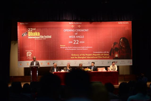 本届达卡国际电影节中国主宾国“广角”(Wide Angle)单元开幕式于当地时间1月22日下午在孟加拉国家博物馆举行。在国家电影局和中国驻孟加拉国大使馆的支持下,“一带一路”电影节联盟成员、达卡国际电影节此次联合上海国际电影节,集中邀请16部类型多元、各具特色的当代中国优秀影片至“广角”单元展映,聚焦、呈现当代中国电影艺术成就。16部影片包括《流浪地球:飞跃2020特别版》《流浪地球2》《峰爆》《我和我的父辈》《雄狮少年》《最后的真相》《好像也没那么热血沸腾》《长沙夜生活》《外太空的莫扎特》《奇迹•笨小孩》《小马鞭》《远去的牧歌》《歌声的翅膀》《天工苏作》《月光武士》《千里送鹤》。此外,还有《脐带》入围电影节竞赛单元“亚洲电影竞赛”,也进行了展映。
