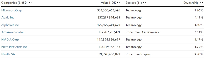NBIM在其网站上发布的持股清单显示,去年该基金增持了苹果、微软、Alphabet和亚马逊,还增持了全球市值最高两家芯片公司的股份——英伟达和台积电,以及芯片设备生产商阿斯麦。
