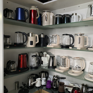 泰鹏电器广州销售中心办公室摆放了各种各样由自营工厂生产的电热水壶。谭海燕/摄