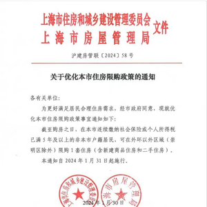 1月30日,上海市住建委、上海市房屋管理局联合印发《关于优化本市住房限购政策的通知》。