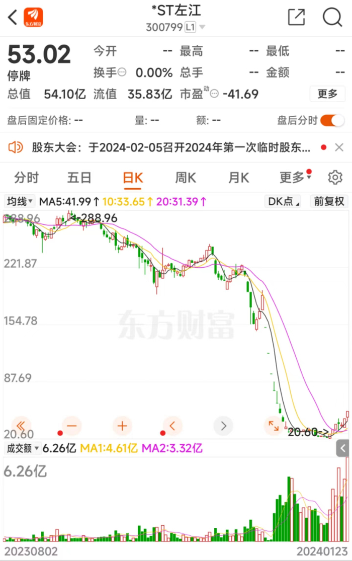 目前,*ST左江仍在停牌中,公司最快在2月1日复牌。