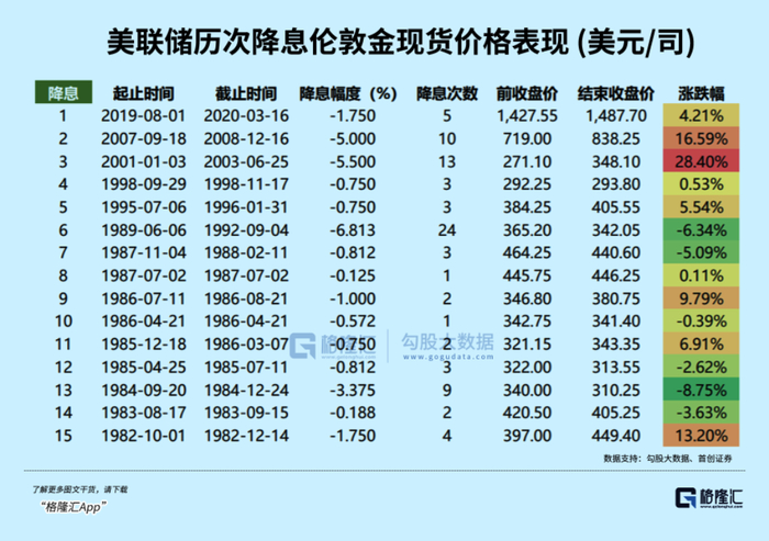 按照历史美联储降息周期看,金价涨跌不一,但整体上涨概率要大于下跌。