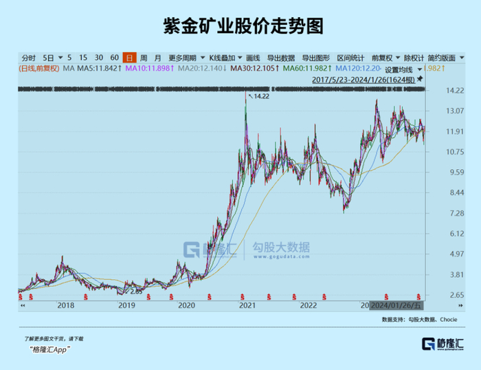 整体而言,紫金矿业的基本面在2016年之后出现了较为明显的改善,股价也进入了持续上涨通道中。