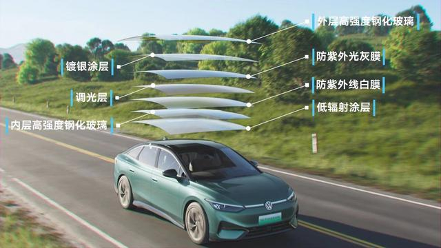 SkyView智能光感天幕,首创7层结构变色天幕,可达到83%的隔热率、99.9%的紫外线隔绝率及95%的遮光率,而且可以达到毫秒级变色开关响应。此外,ID.7 VIZZION配备了第三代空气监测系统Clean Air 3.0、双层滤芯、配备负氧离子发生器等多项科技创新,打造接近0醛0苯的座舱环境。Harman Kardon音响系统、ID. Light 智能交互灯带等,让驾乘者时刻体验出行的舒适与惬意。