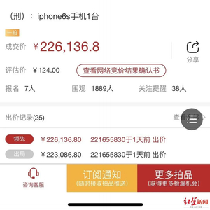 1月30日,一则“旧iphone 6s涉刑手机被拍出22.6万天价”的消息引发关注。