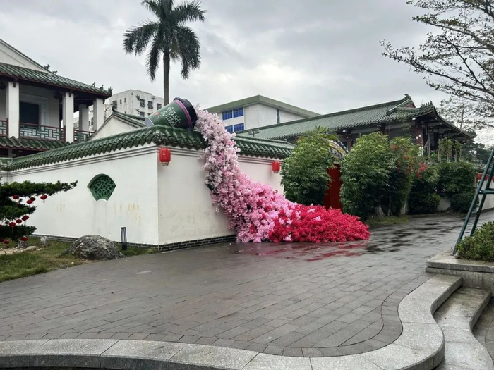 正月十三,专业的舞蹈团队以花为主题,以琼山区琼台福地、鼓楼为背景,表演国风舞蹈、演唱的快闪活动,与市民、游客互动,展现花的美丽与生命力。