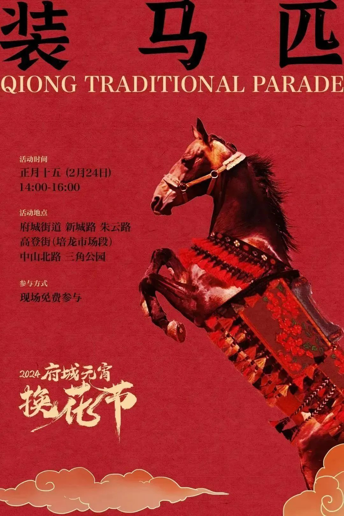 2024元宵府城换花节将组织由特邀群众扮演成的丘浚、海瑞、七仙女等历史名人和传说人物,组成“装马匹”队伍,一路巡游、拜年、祈福求平安。
