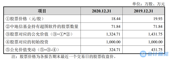 1、中地信基金直接投资的超图软件公允价值变动的计算过程