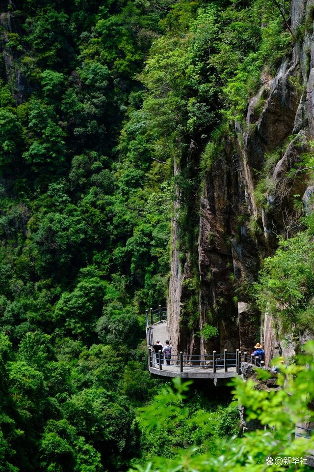 ↑ 2023年5月16日,游客在浙江省台州市天台县游览天台山琼台仙谷景区。徐霞客在游记中写道:“峰头中断,即为双阙;双阙所夹而环者,即为琼台。”