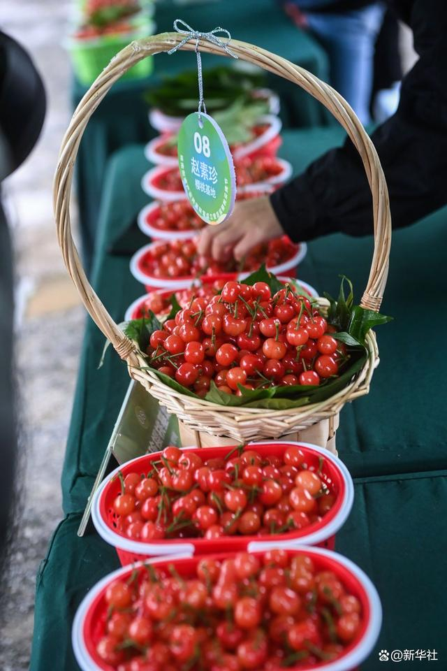 ↑ 2023年4月23日在樱桃采摘节活动现场拍摄的樱桃。