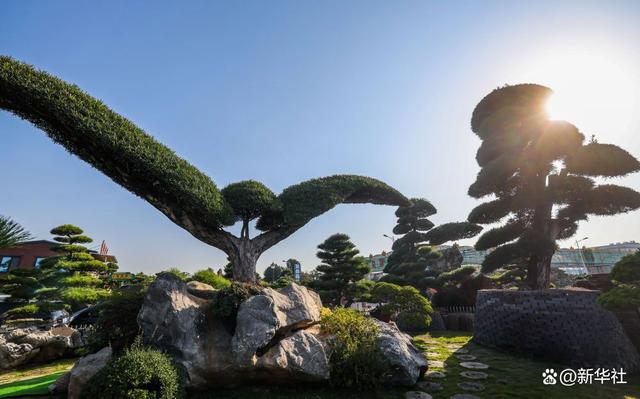 ↑ 2023年11月25日,金华市金东区澧浦花木城的第二十一届中国(金华)花卉苗木博览会上展示的庭院景观树罗汉松“大鹏展翅”。