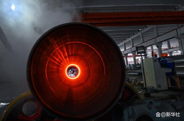 ↑ 2023年3月23日,在位于嘉兴市的国家专精特新“小巨人”企业——浙江德威不锈钢管业股份有限公司钢管热处理车间,热处理工在进行钢管焊后固溶处理。