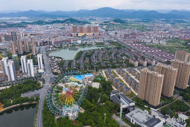 ↑ 2023年6月19日拍摄的东阳市南马镇花园村。花园村正努力打造成为中国式现代化乡村振兴样板、高质量共同富裕村级样板。