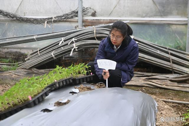 ↑ 2023年3月17日,在杭州市临安区清凉峰镇的九都村蔬菜基地内,新农人王瑜在给一批菜苗进行定植。王瑜是九都村回乡创业的“新农人”,从事高山蔬菜育苗和种植,也是农村青年致富带头人。