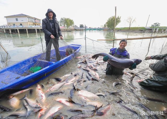 ↑ 2023年12月23日,浙江省湖州市吴兴区东林镇泉庆村村民在拉网捕鱼,用于烹制当地的特色鱼汤饭美食。当日,浙江省湖州市吴兴区东林镇的水乡“鱼汤饭 品丰年”迎新年活动在泉庆村举办,活动包括清塘捕鱼、全鱼宴、鱼圆鱼饼、手作方糕等年味美食的制作及品尝,还有歌舞表演、鱼王拍卖、非遗柳编现场展示、书法爱好者写春联送祝福等,以迎接新年的到来,展示当地特色民俗文化和美食,助力乡村旅游发展。