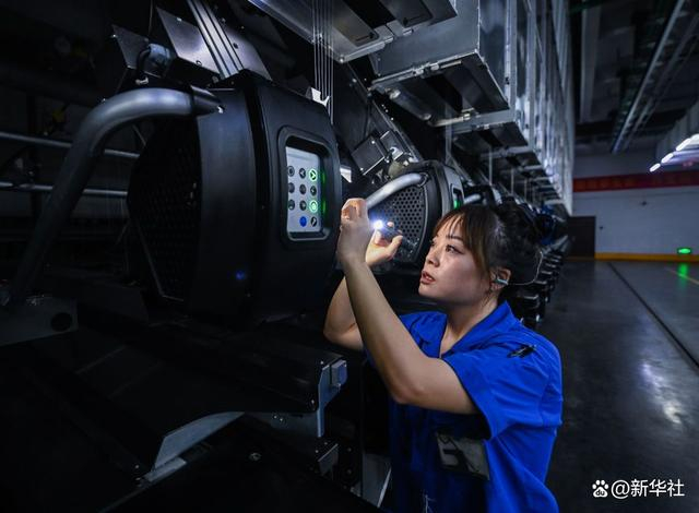 ↑ 2023年2月2日,位于桐乡市洲泉镇工业园区的桐昆集团浙江恒超化纤有限公司的车间内,工人正在自动化生产线上巡查。春节期间,该公司的生产设备全负荷运转,1000多名职工坚守在生产一线,全力冲刺一季度“开门红”。