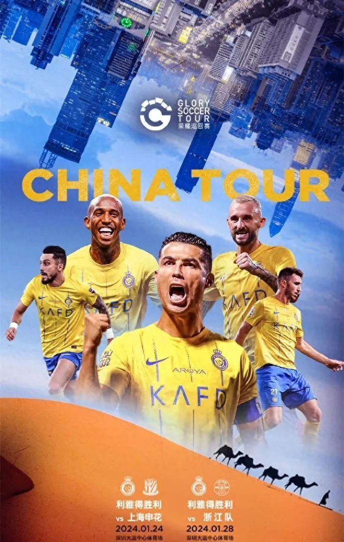 按照原计划,C罗将在1月24日和28日,和他所在的沙特利雅得胜利队要和上海申花以及浙江队踢两场比赛。