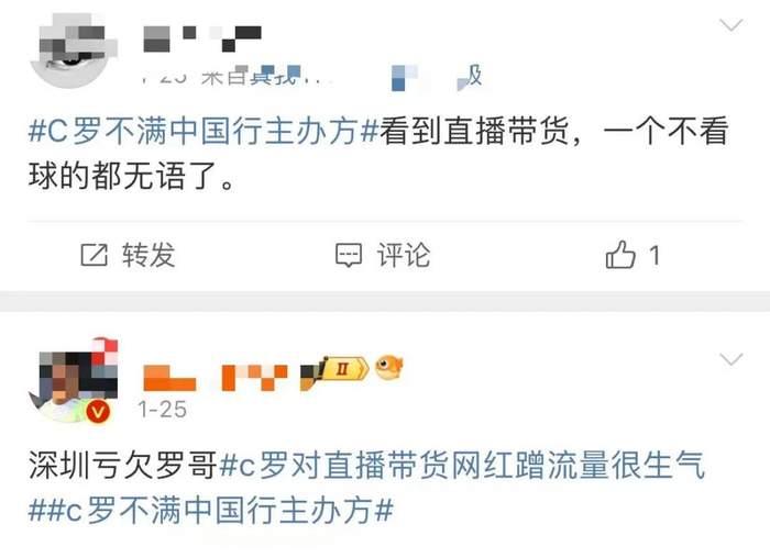 第二天,C罗的“淘宝直播首秀”也被宣布取消。