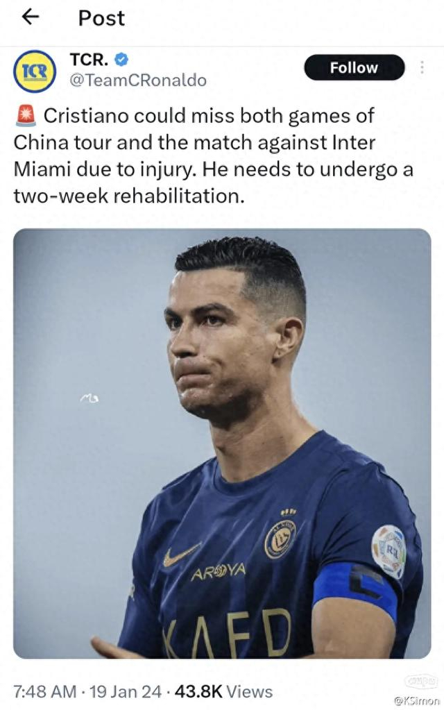 按理说,主办应该准备一个C罗受伤后的备用方案,确保C罗来华后的商业活动和比赛照常进行。
