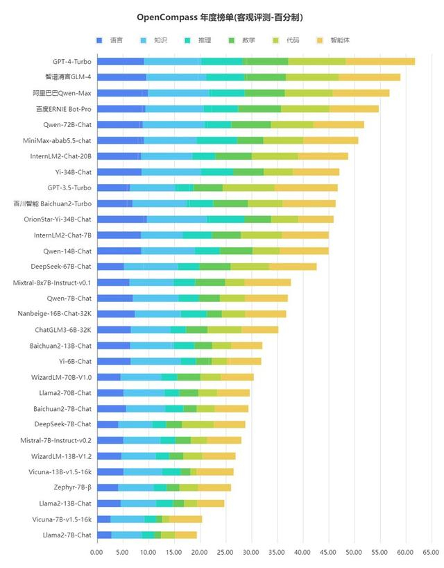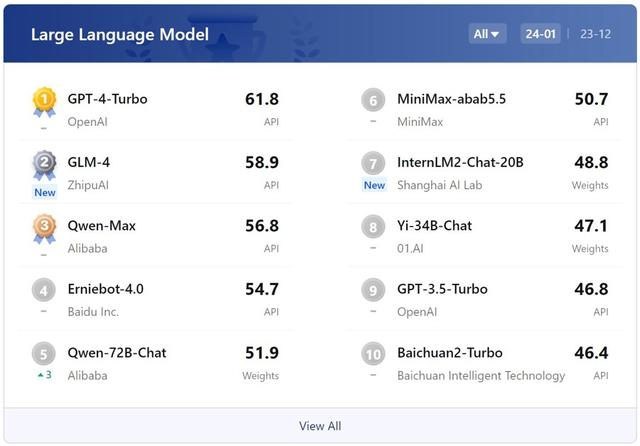 大模型评测榜单发布:GPT-4第一,智谱、阿里、百度产品跻身前五