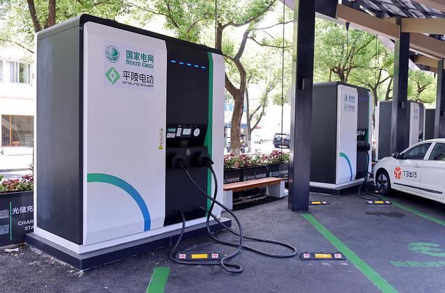 2023年9月3日,江苏常州,国家电网所属的新能源汽车充电站。