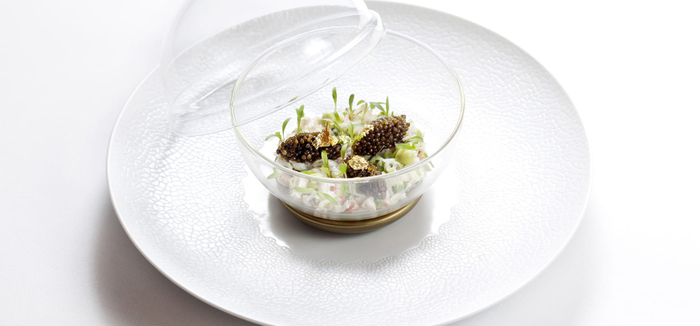位于中环金融街的香港四季酒店凭借七颗星星,成为香港拥有最多米其林星的美食圣殿,其中位于酒店六层的Caprice是香港老牌米其林三星餐厅,也是本地法餐的标杆和顶梁柱。主厨Guillaume Galliot在卢瓦尔河谷长大,从小就对烹饪和旅游萌生了浓厚的兴趣。从厨艺学校毕业后,他曾就职于一系列知名餐厅,包括Jardin des Sens。虽然Galliot擅长的是传统法式烹饪技艺,但他也在不断发掘世界各地的风味,并将其融入自己创制的菜肴中。不论食客瞩意经典或创新菜式,Caprice都能给出完美解法。