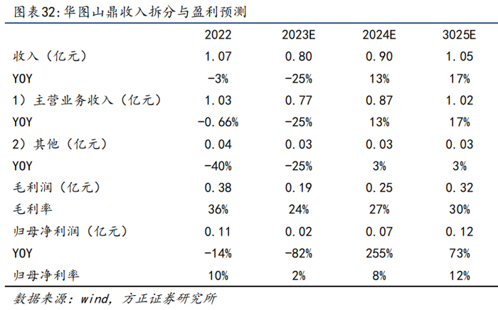于非学历教培相关业务的推进进度具有不确定性,因此我们仅对华图山鼎原设计相关业务进行预测。